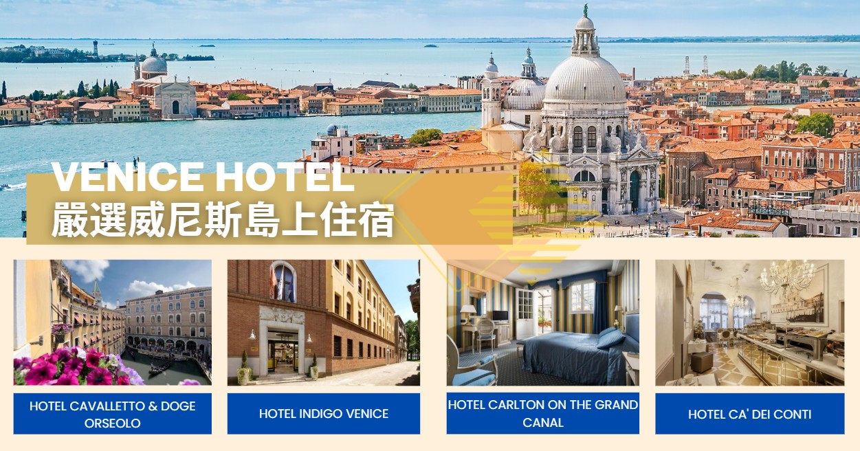 HOTEL CAVALLETTO & DOGE ORSEOLO 或HOTEL INDIGO VENICE或SAN MARCO PALACE或HOTEL CA'' DEI CONTI 或HOTEL CARLTON ON THE GRAND CANAL(威尼斯島上精選四星)或同級